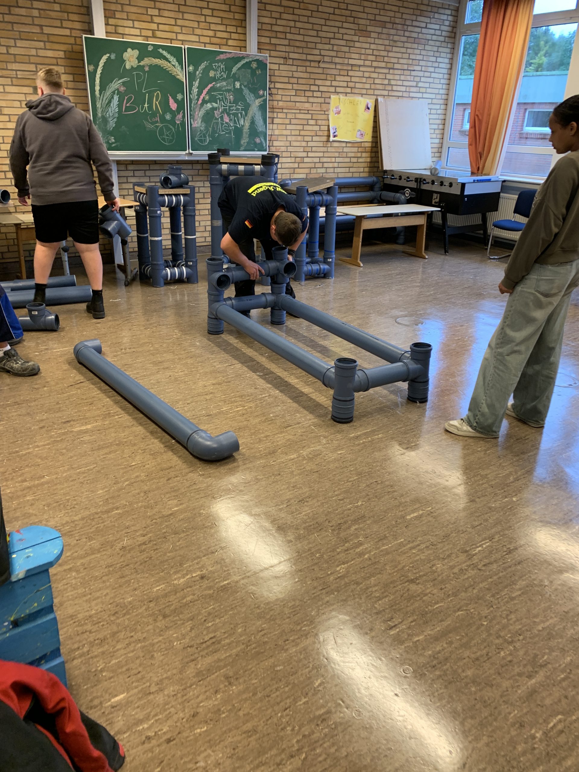 Im Fach Berufsorientierung präsentieren wir an Schulen zusammen mit Handwerkspartnern und ihren Junggesellen und aktuellen Lehrlingen den Ausbildungsberuf „SHK-Anlagenmechaniker“. Dort lernen Schüler ganz praktisch, mit ihren Händen zu arbeiten und zu denken. Vier Stunden lang kann jeder Teilnehmer schneiden, stecken und pressen (manchmal sogar schweißen und Spezialwerkzeuge ausprobieren). Häufig wird mittlerweile auch eine Fußbodenheizung verlegt und per CAD-Software ein Badezimmer geplant. Grundsätzlich immer werden zudem simulierte Verstopfungen in Abwassersystemen per Endoskopkamera geortet und beseitigt sowie mithilfe einer AR-Brille eine Heizungsanlage digital repariert. Zwischen den einzelnen Stationen werden Vorbehalte gegenüber Handwerksberufen diskutiert (und meist entkräftet), die besonderen Vorteile des SHK-Berufs als Lebensmodell vermittelt sowie auf die guten Möglichkeiten zur Fort- und Weiterbildung im Handwerk nebst Karrieremöglichkeiten hingewiesen – so auch an der Julianka-Gemeinschaftsschule in Heiligenstedten bei Itzehoe.
